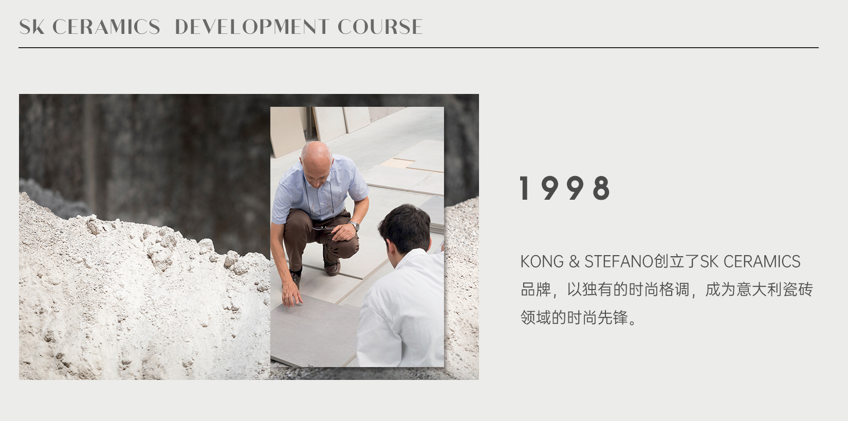 1997年,SK ceramics創(chuàng)始人Kong與意大利鬼才設(shè)計(jì)師Stefano聯(lián)合研發(fā)出全球第一塊大理石手工磚“SK Marble”,引發(fā)了陶瓷行業(yè)與國(guó)際媒體的廣泛關(guān)注。“SK Marble”以極富創(chuàng)新精神的設(shè)計(jì),為空間美學(xué)注入了豐富的想象力和創(chuàng)造力,成為博洛尼亞陶瓷展的明星產(chǎn)品。